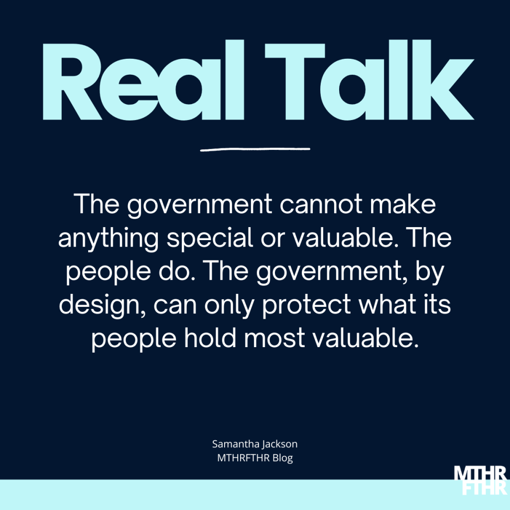 Real talk, the government cannot make anything special or valuable. The people do. The government, by design, can only protect what its people hold most valuable.